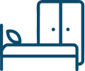 • Chambres meublées avec lit, draps, armoire, bureau et parfois lavabo.